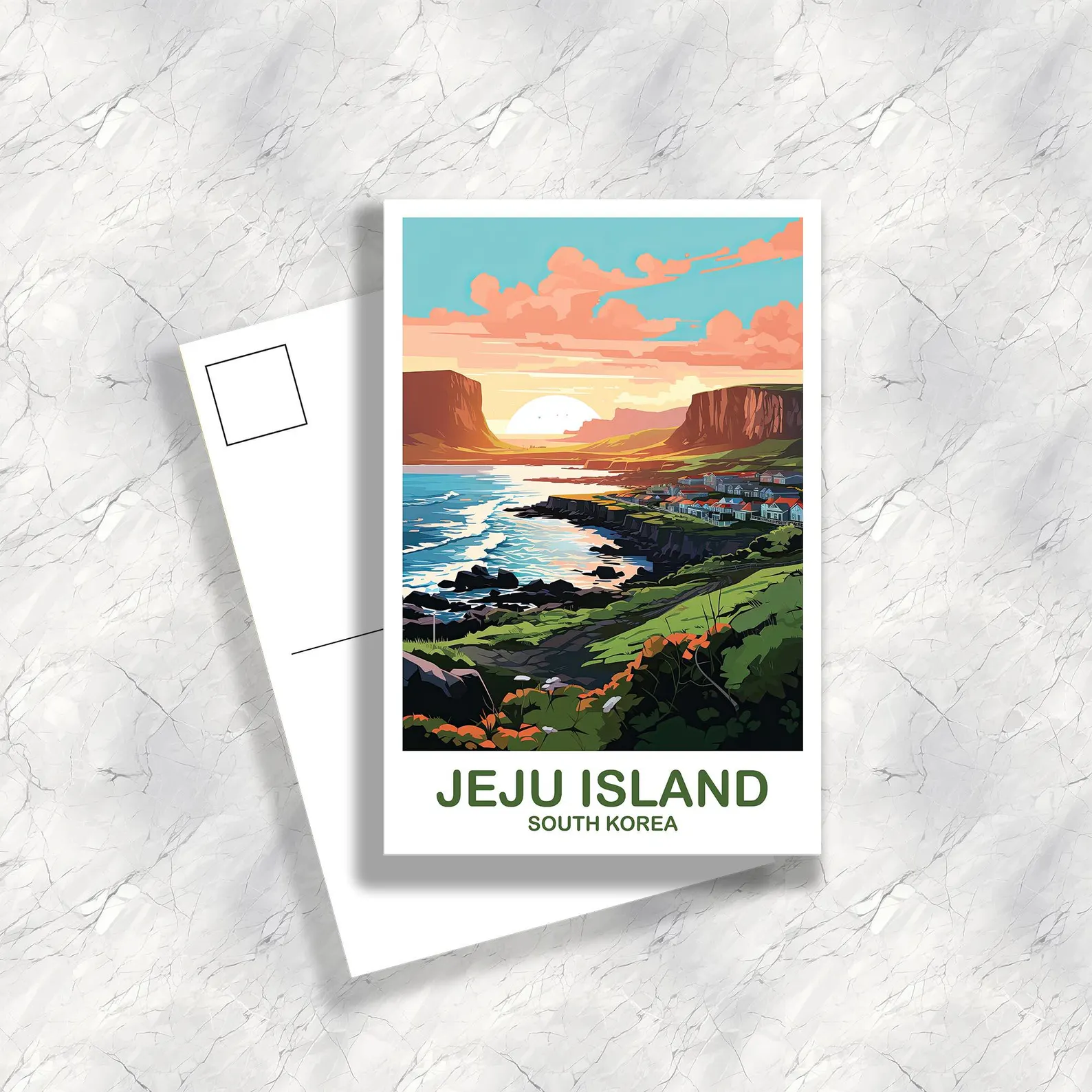 Jeju Island South Korea Travel Postcard, South Korea Art Postcard Jejus Island Postcard Travel Postcard Korea Postcard - Image 3