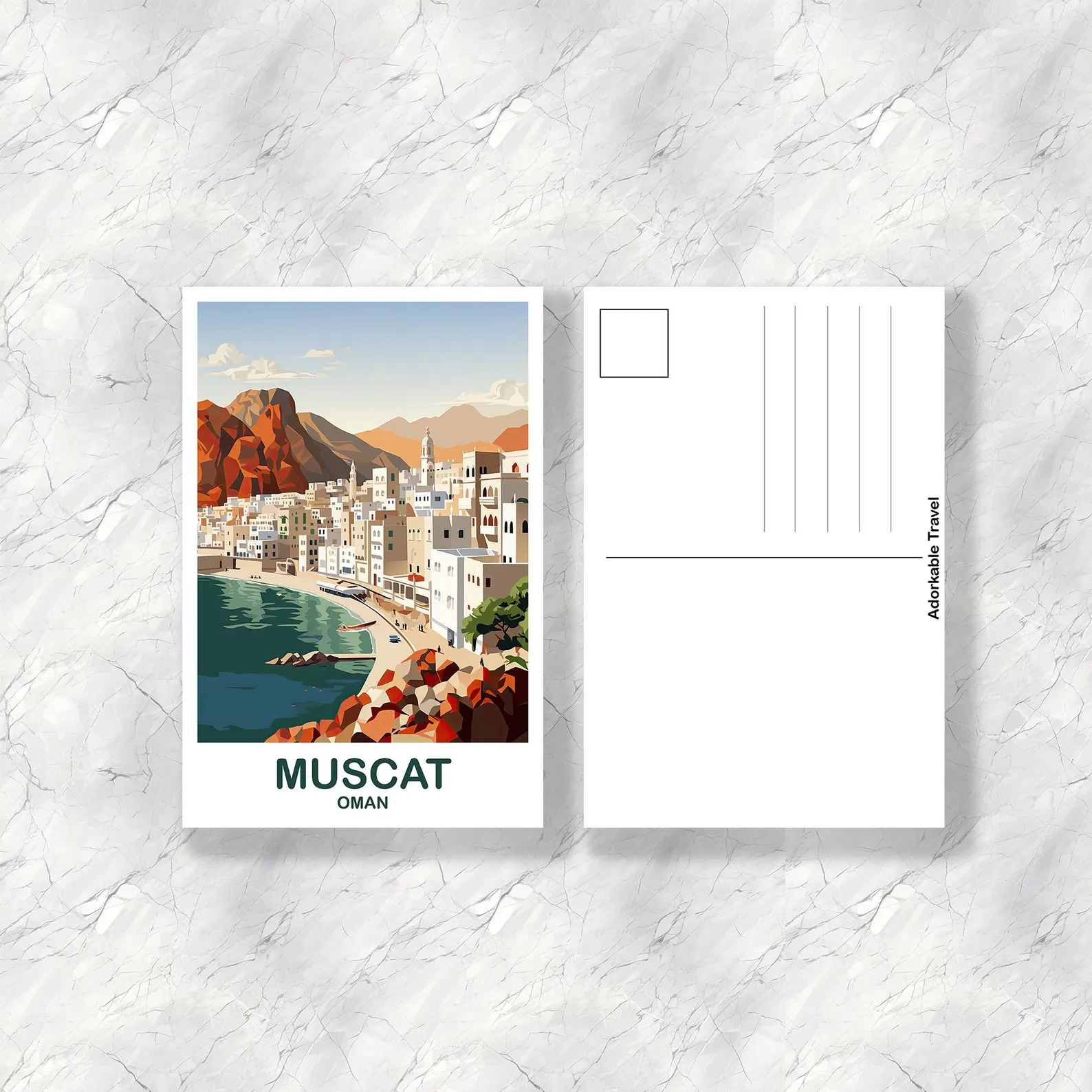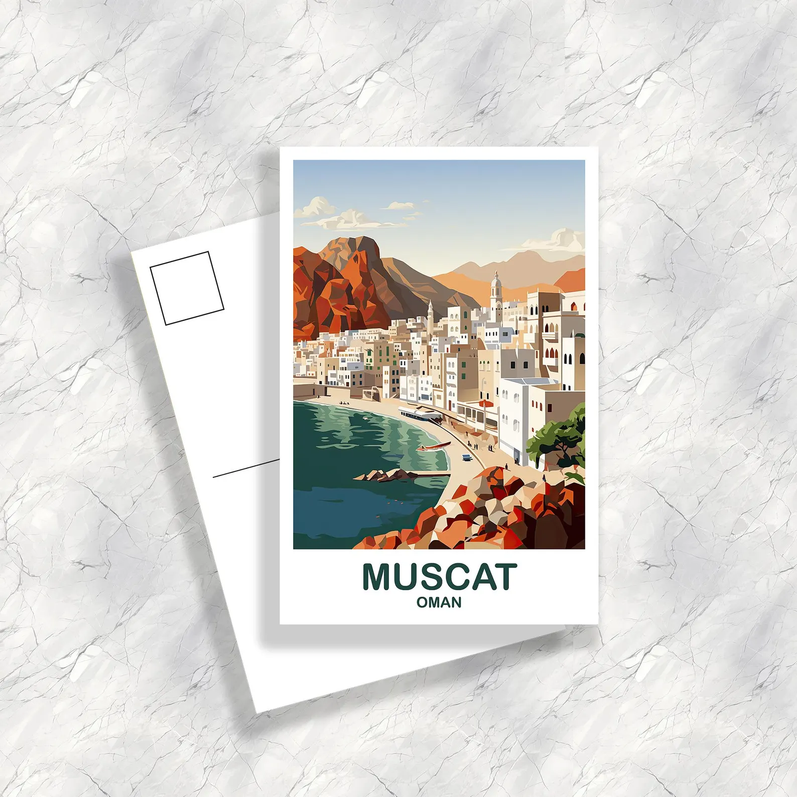 Celebrate the serene beauty, rich culture, and architectural splendor of Muscat, Oman, with this captivating travel postcard. Immerse yourself in the harmonious blend of traditional Arabian charm and modern elegance that defines this coastal gem on the Arabian Peninsula.