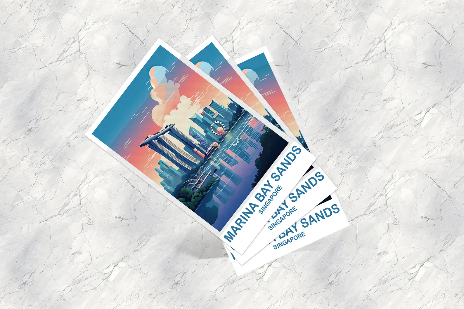 Celebrate the allure of the iconic Marina Bay Sands with this captivating postcard, perfect for adorning your space with the magic of Singapore. The poster beautifully captures the architectural marvel that is Marina Bay Sands, set against the stunning cityscape.